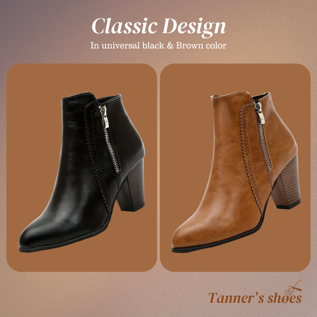 Ienāciet elegancē ar Amelia elpojošajām PU ādas zābaciņām līdz potītei. Šie zābaki ar stilīgu apaļās purngala siluetu un masīvu papēdi ir lieliski piemēroti, lai izceltu savu tēlu. Elpojošais tīkliņa oderējums nodrošina komfortu visas dienas garumā, kamēr augstvērtīgais PU ādas virsklājs piešķir izturību un koptu izskatu.