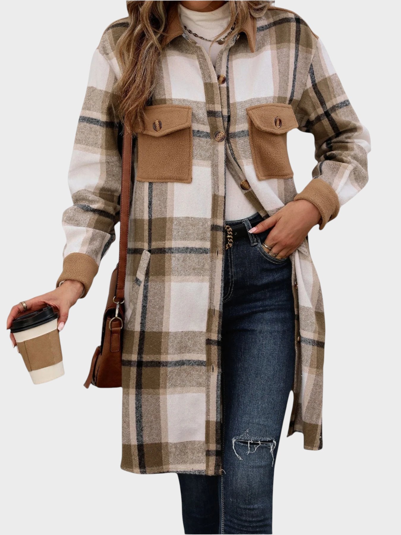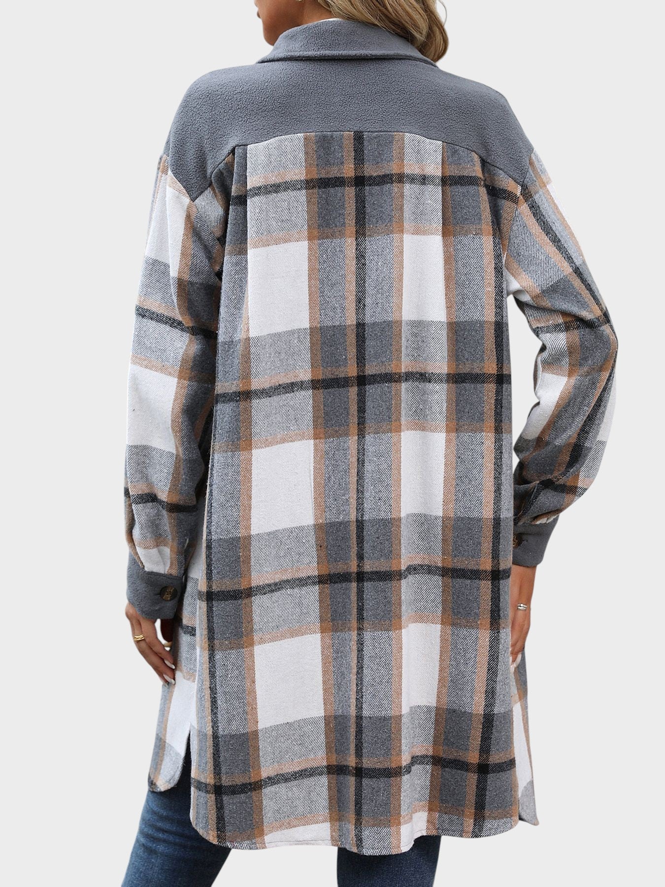Austra Stylish Rūtaina Krekla Jaka ar Praktiskām Kabatām