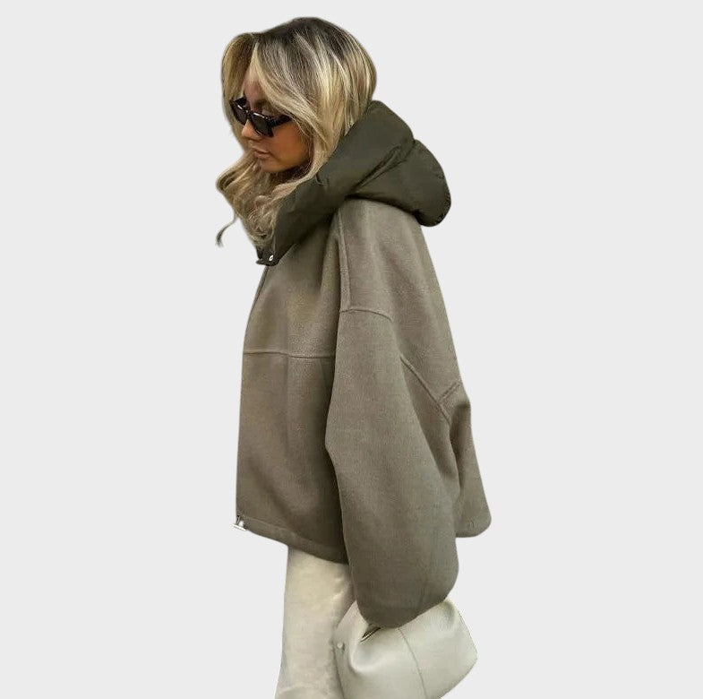🧢 Praktiska kapuce: Kapuce pasargā no vēsās brīžiem un vienlaikus pievieno stilīgu, mūsdienīgu akcentu tavai garderobei.